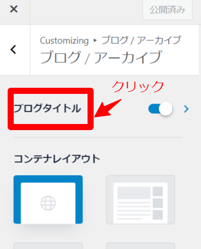 ブログ/アーカイブのブログタイトルを選択